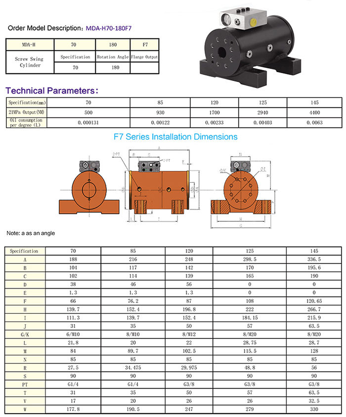 F7系列螺旋擺動油缸為底腳式安裝,帶防暴管平衡閥,結(jié)構(gòu)緊湊,外觀合適。安裝方便,普遍應(yīng)用于各種工程機(jī)械及翻轉(zhuǎn)機(jī)構(gòu),與進(jìn)品F7系列1:1互換使用。
